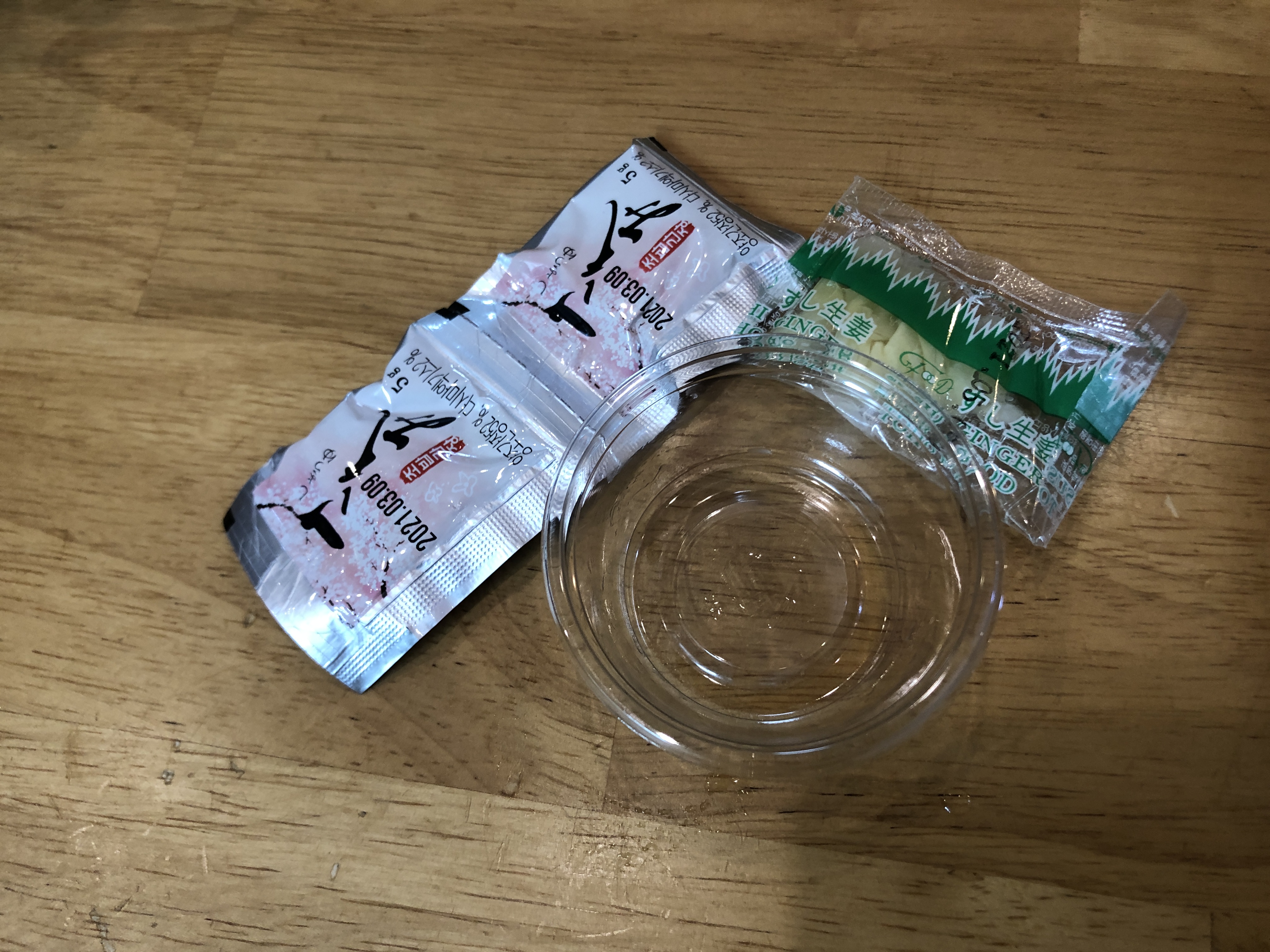 같이 곁들이는 간장과 생강, 빈용기까지 함께 들어있어요