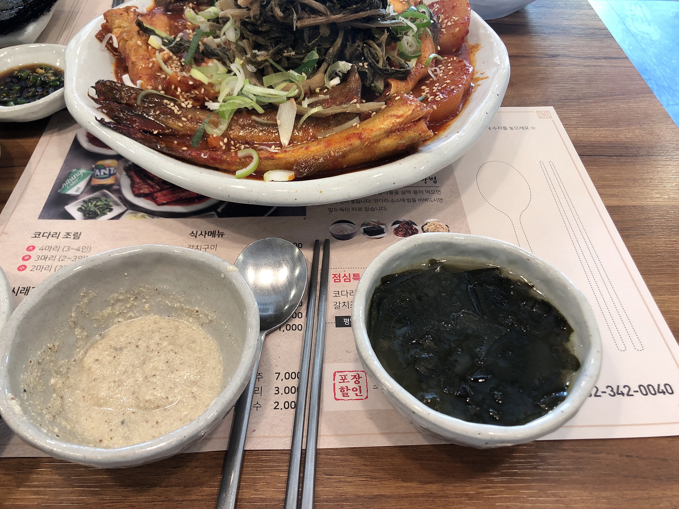 들깨탕을 먼저 먹지 말고 코다리조림과 함께 먹을걸 하구요;