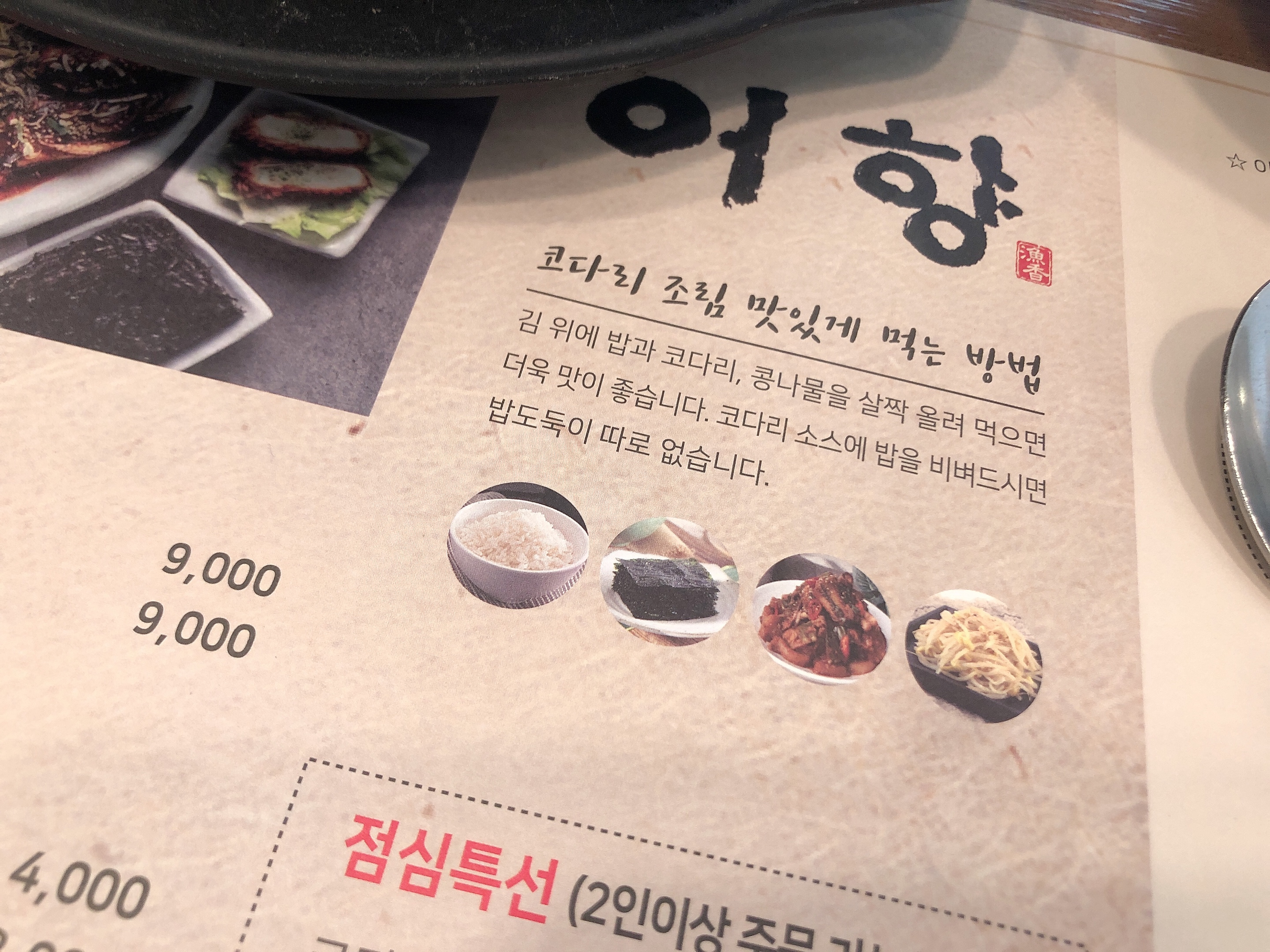 우연히 나온 메뉴가 코다리찜이었는데요.