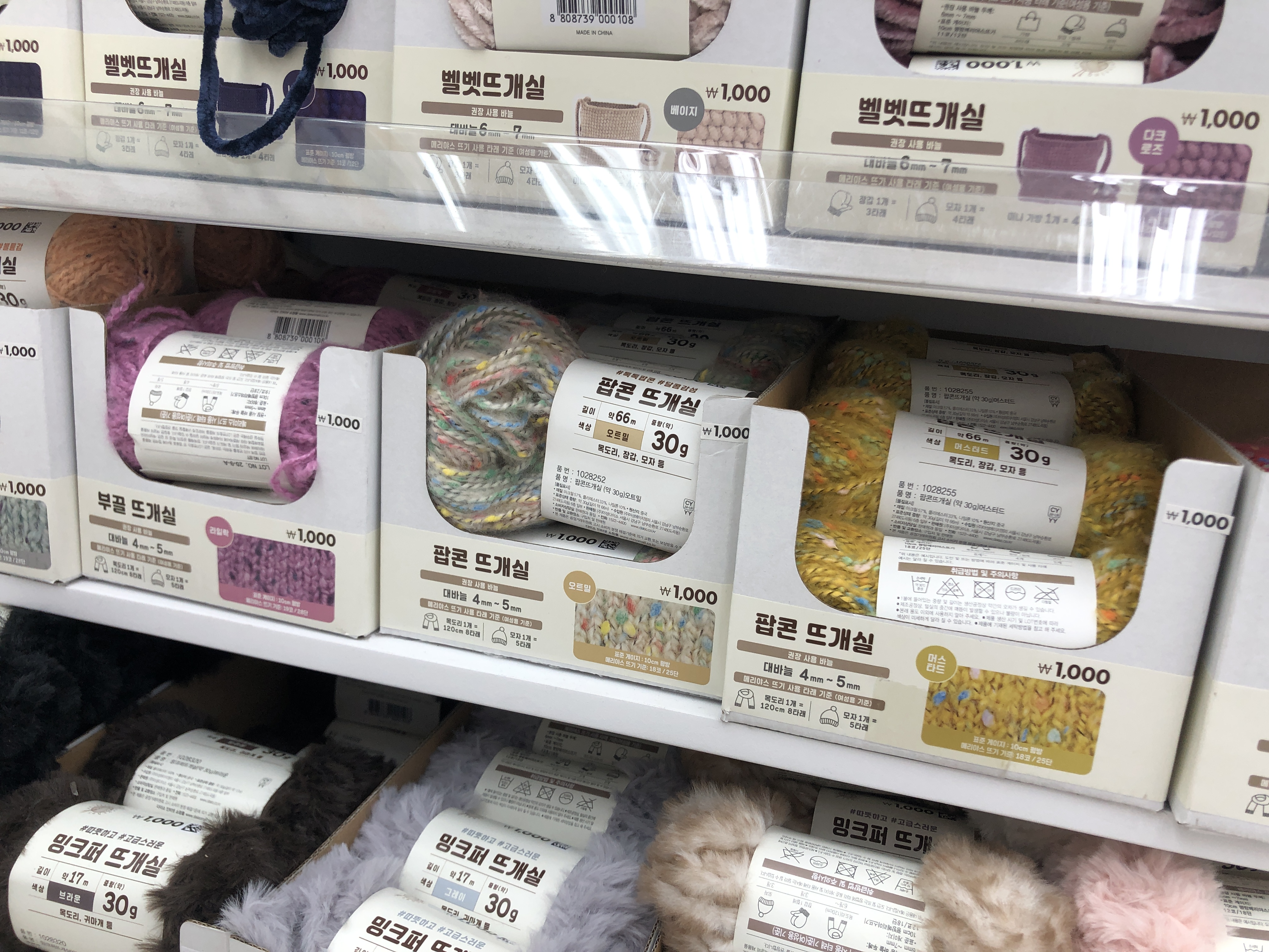 팝콘 뜨개실, 사진엔 잘 보이지 않지만 벨벳뜨개실,