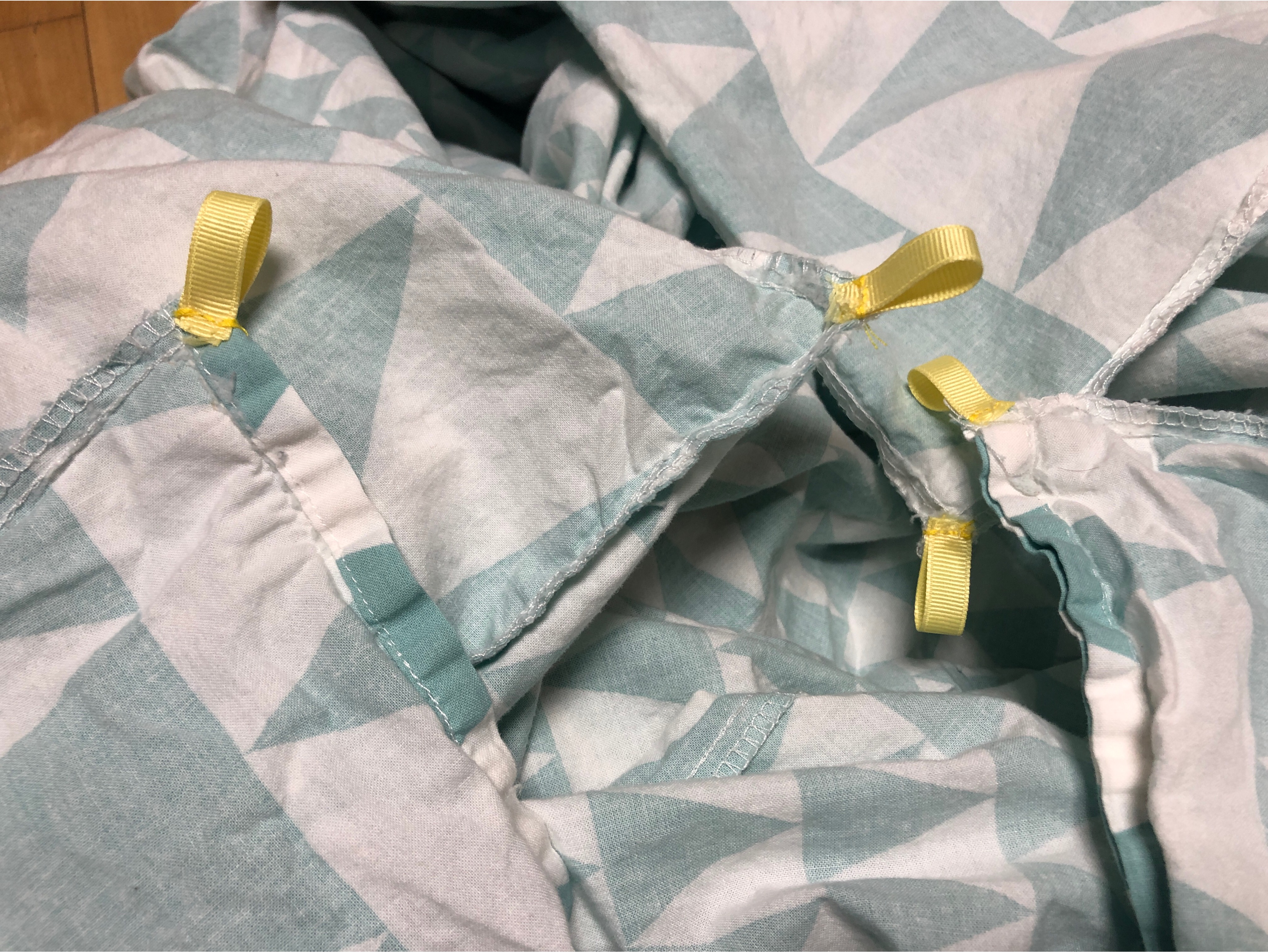저처럼 이케아 이불커버와 이불솜을 사용하면서 솜과 따로 놀아 불편하셨더라면, 잠깐 틈을 내 이렇게 고정해보심이 어떨까 싶어요!