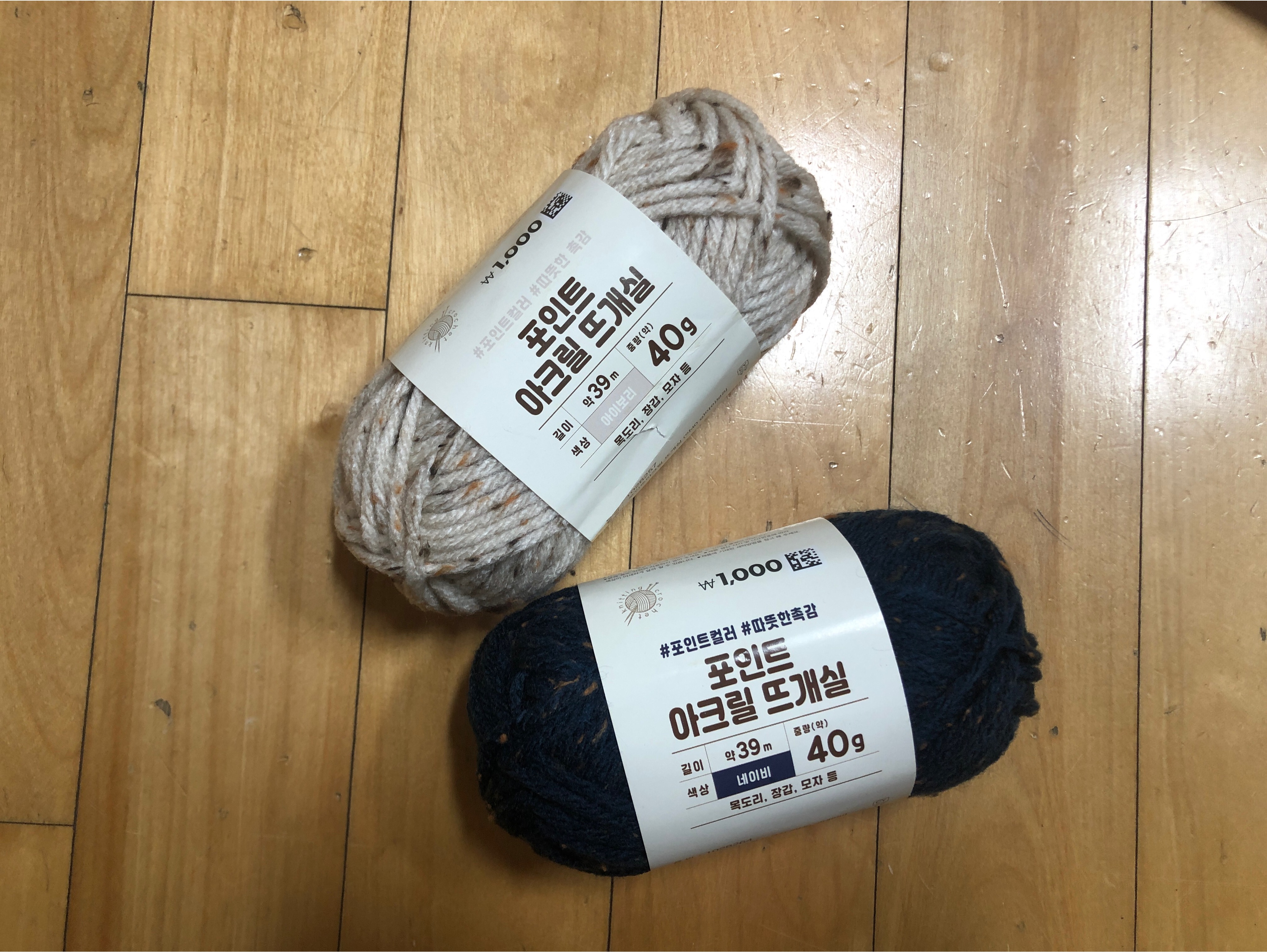 지난번에 다이소에서 구입한 포인트 아크릴 뜨개실입니다.