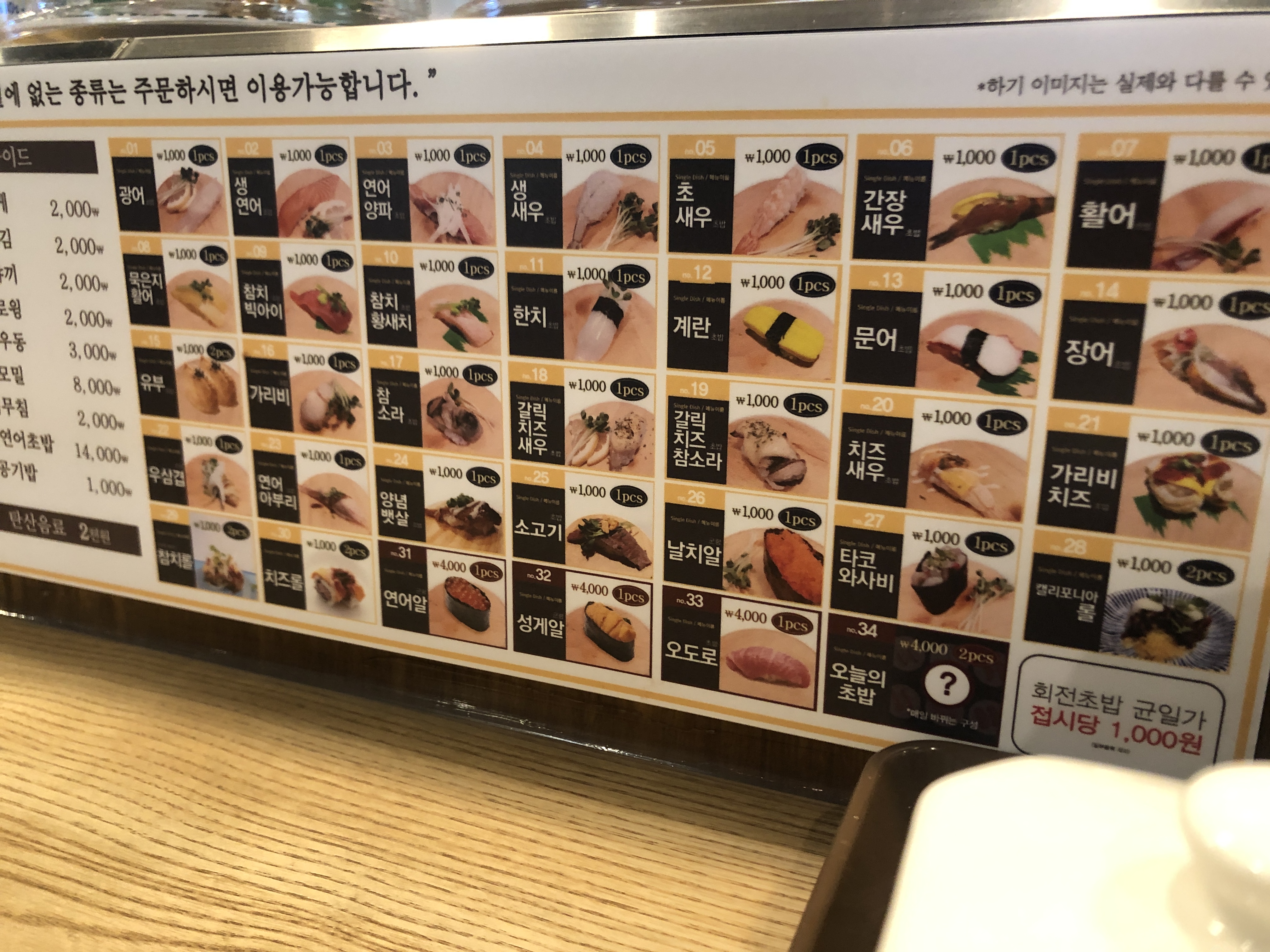 보통은 천원이고, 스폐셜 초밥은 접시당 4,000원