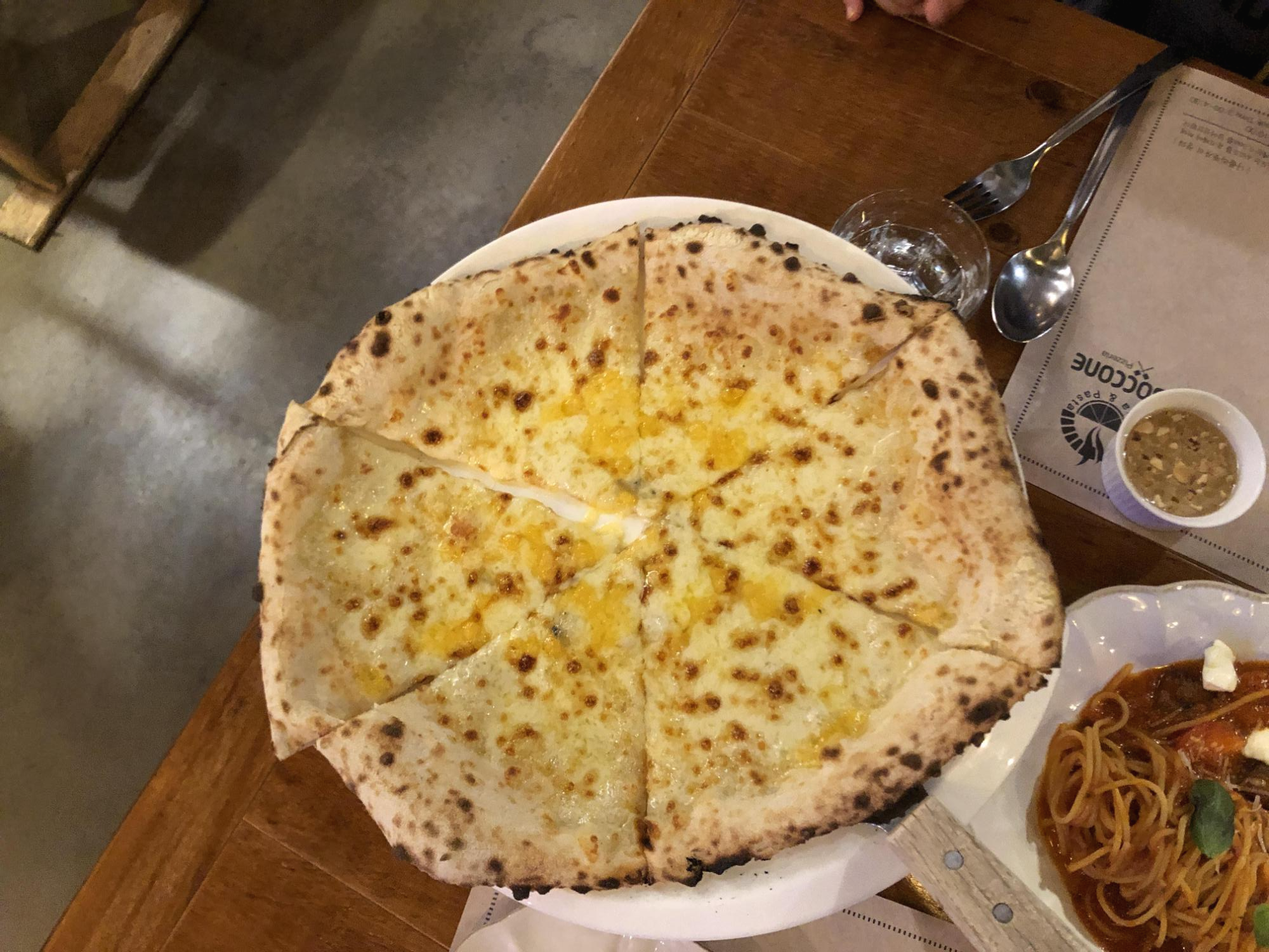 피자도, 평소 같았음 마르게리타를 주문했을텐데, 아이들을 위해 고르곤졸라를 주문했어요.