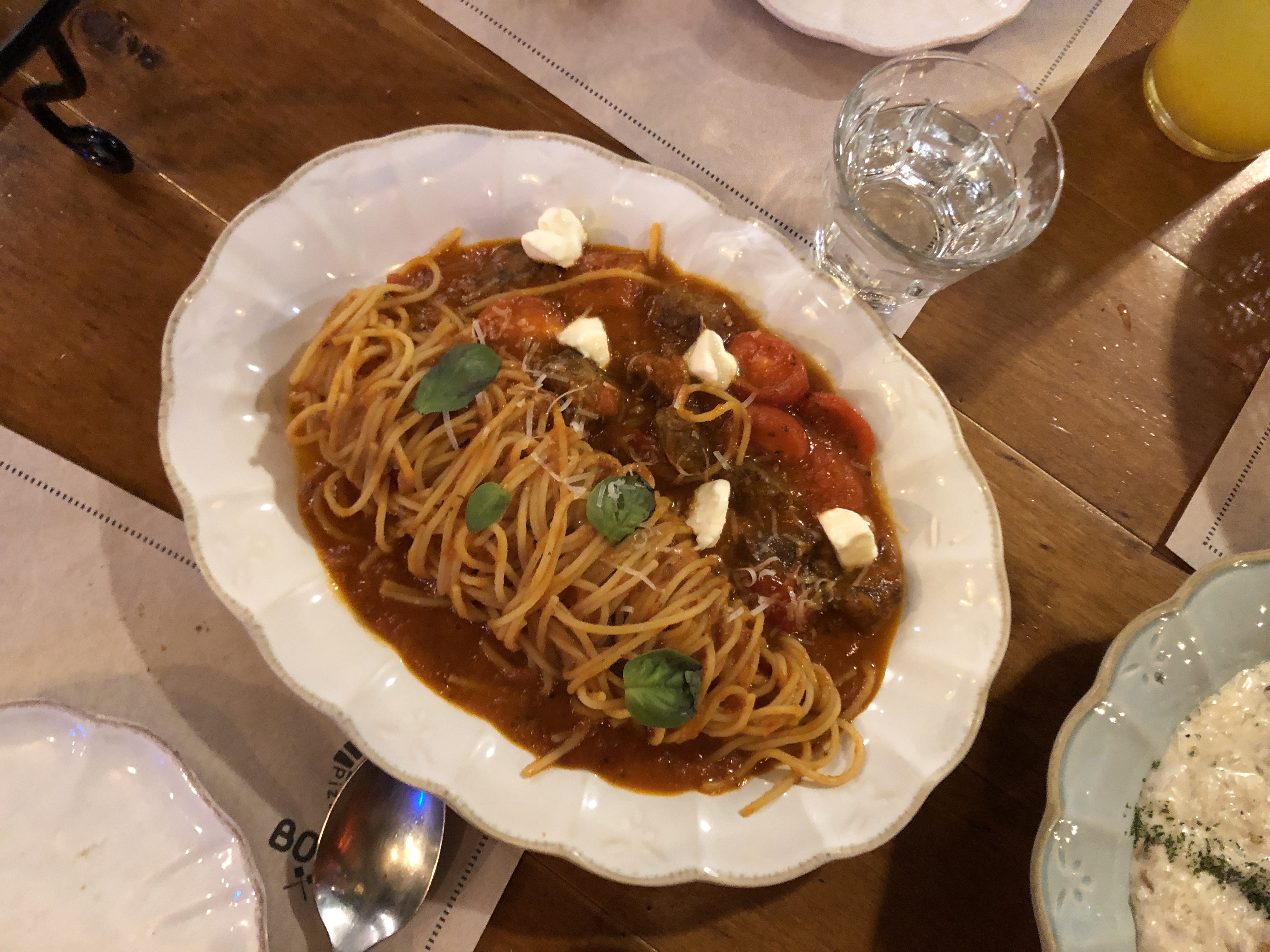 파스타도... 안매운걸 선택하려다 보니 뽀모도르 알라 만조를 선택했어요.