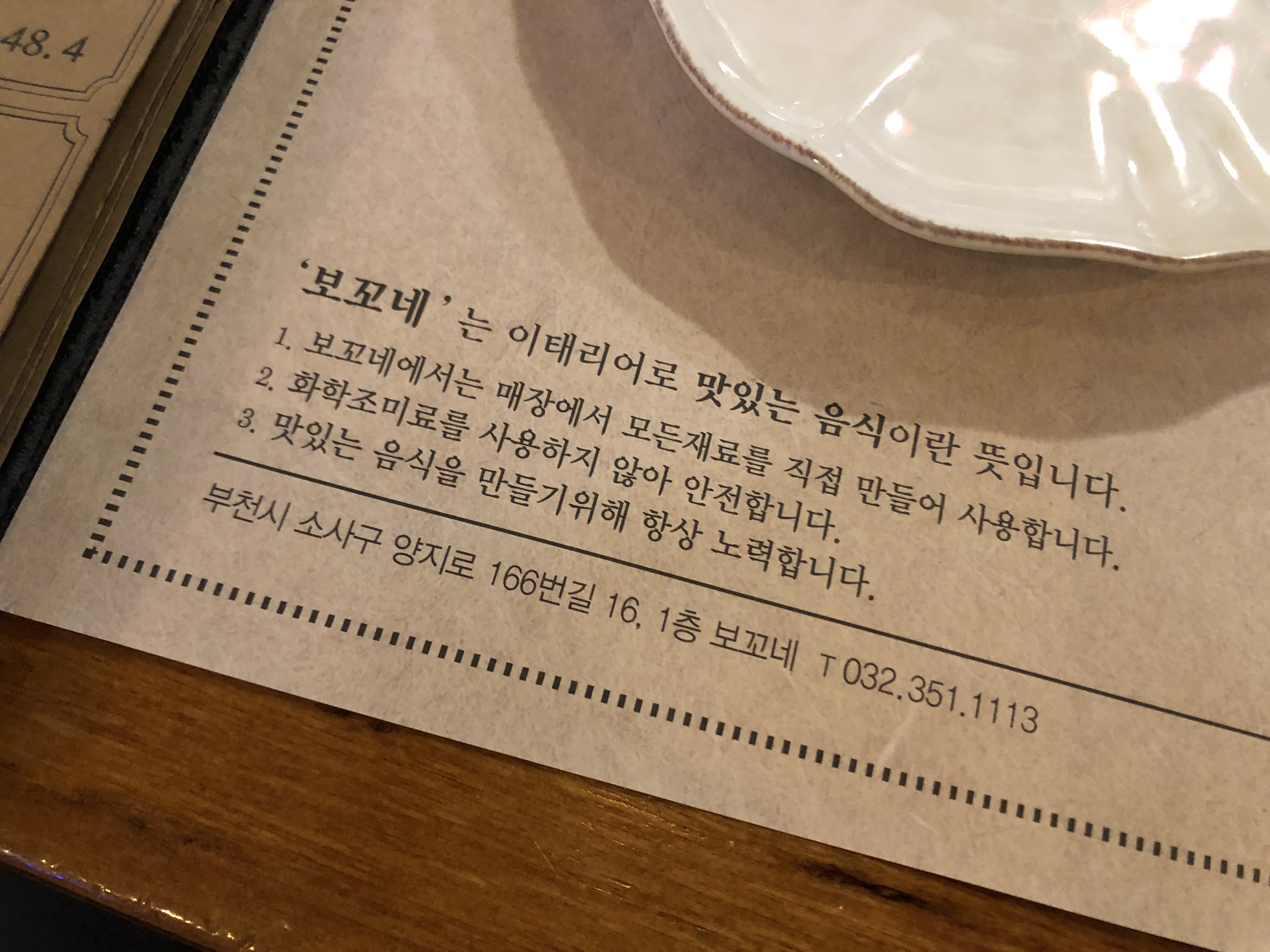 부천 옥길동맛집 보꼬네는 이태리어로 맛있는 음식이란 뜻이래요.
