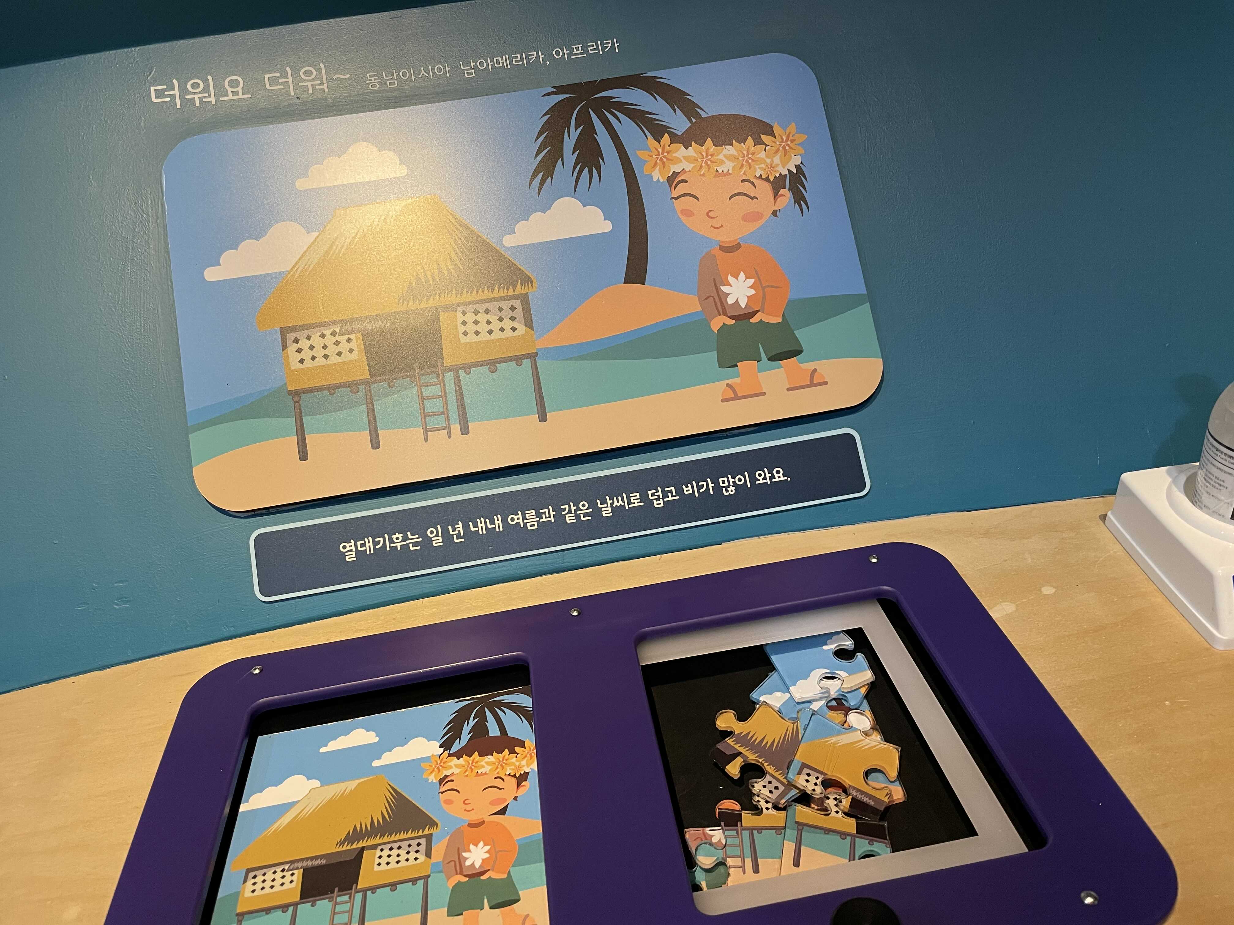 퍼즐을 맞추며 이해할 수 있도록 놀이로 표현한 공간들도 많았구요.
