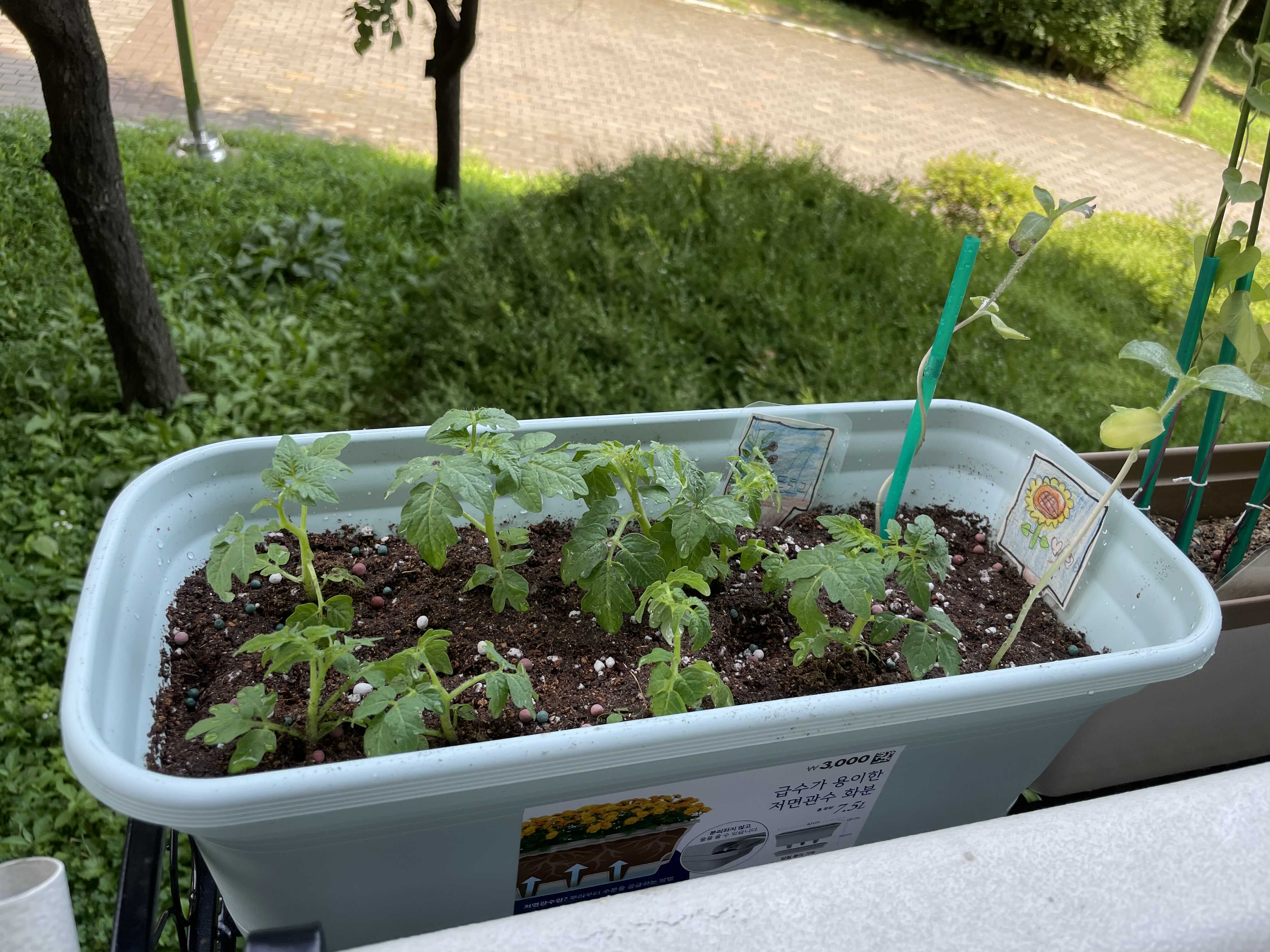 밖으로 내보낸지 몇일 뒤부터 토마토가 쑥쑥 자라는게 눈에 띄게 보이기 시작하더라구요.