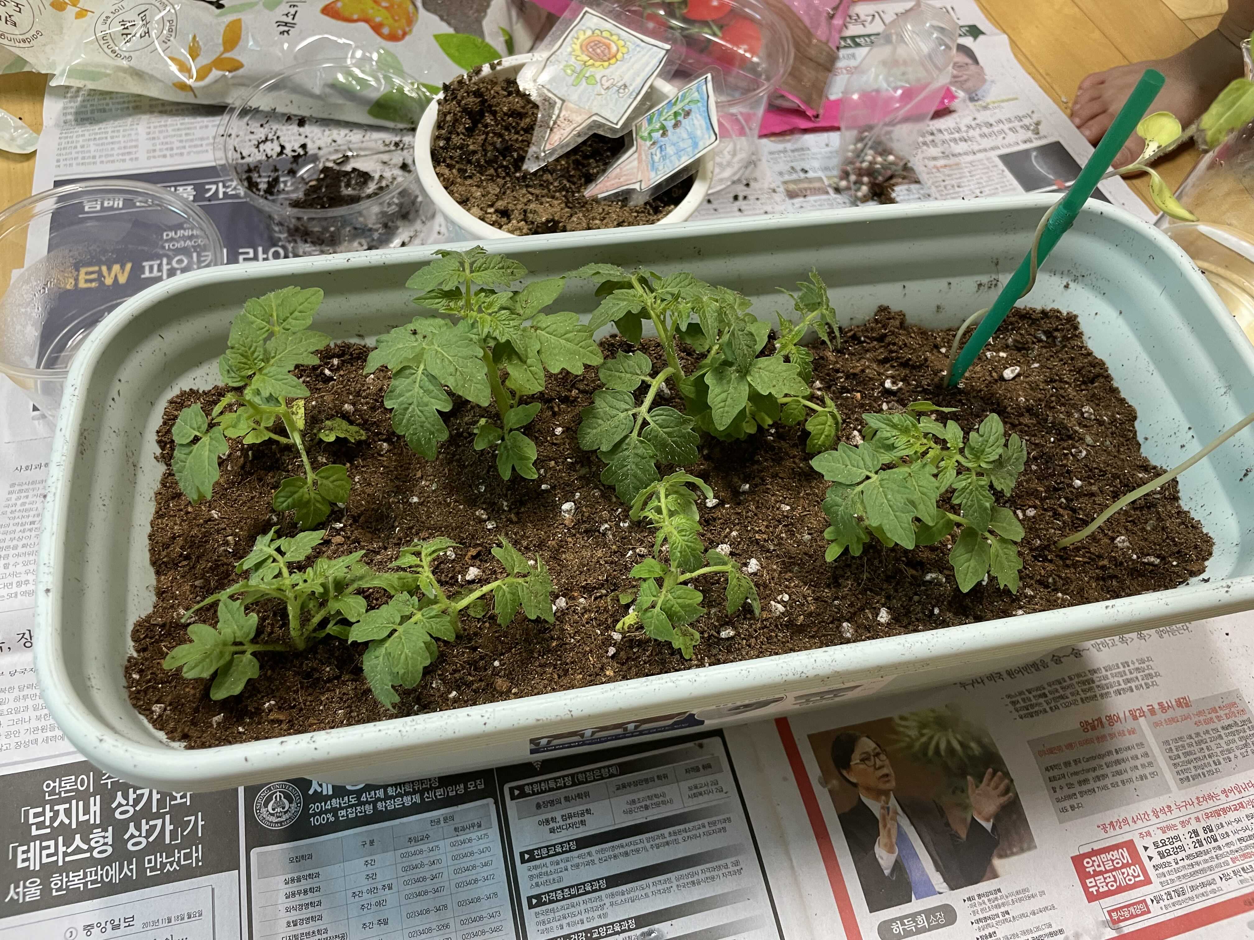 아이가 학교에서 봄이 되니 나팔꽃을 키우더라구요. 새싹이 돋아나고 잎도 돋아나고, 어느정도 키워서 집으로 화분을 보내왔는데 방울토마토키우기 키트도 추가로 가지고 왔어요. 사실 저희집