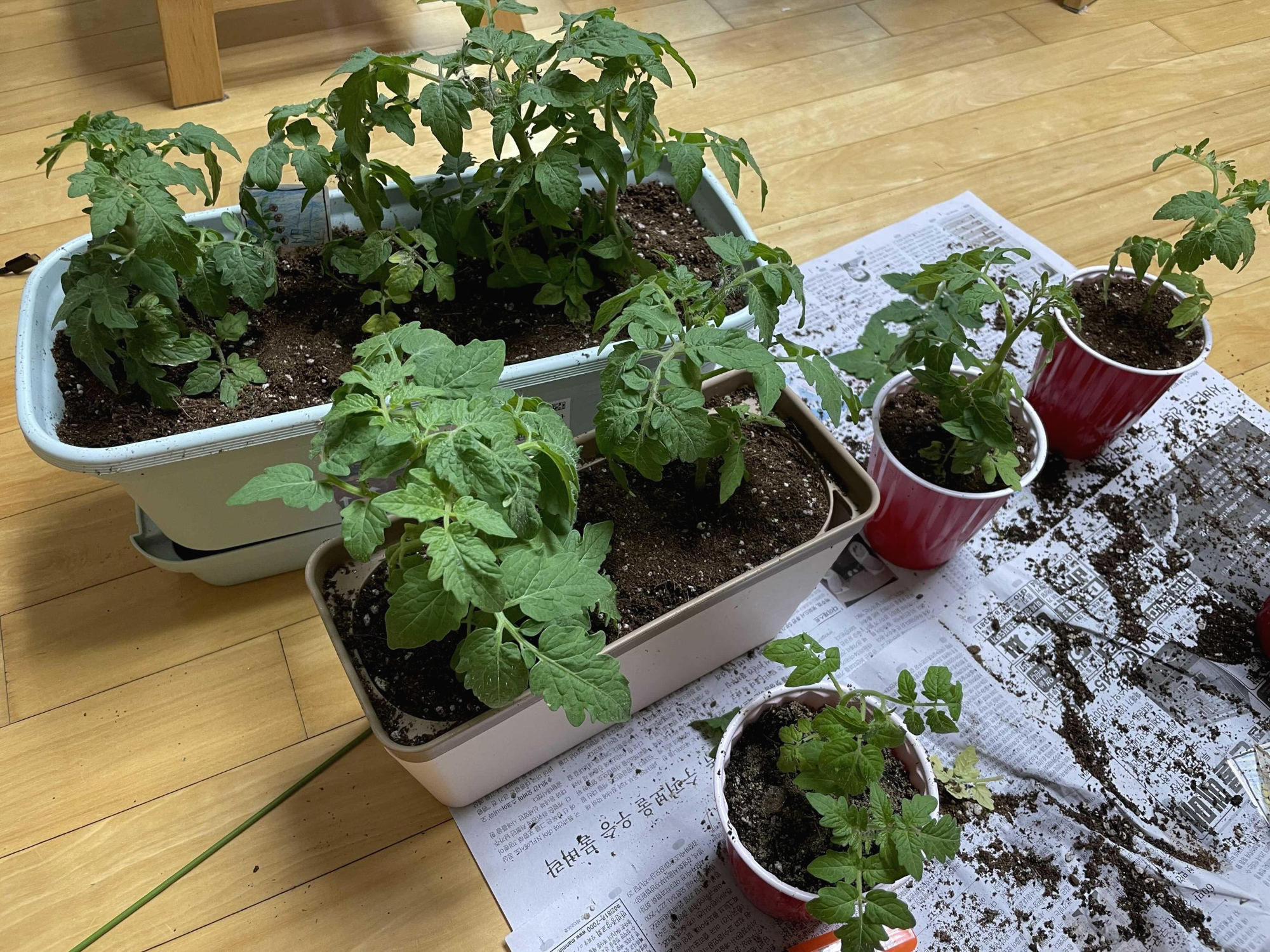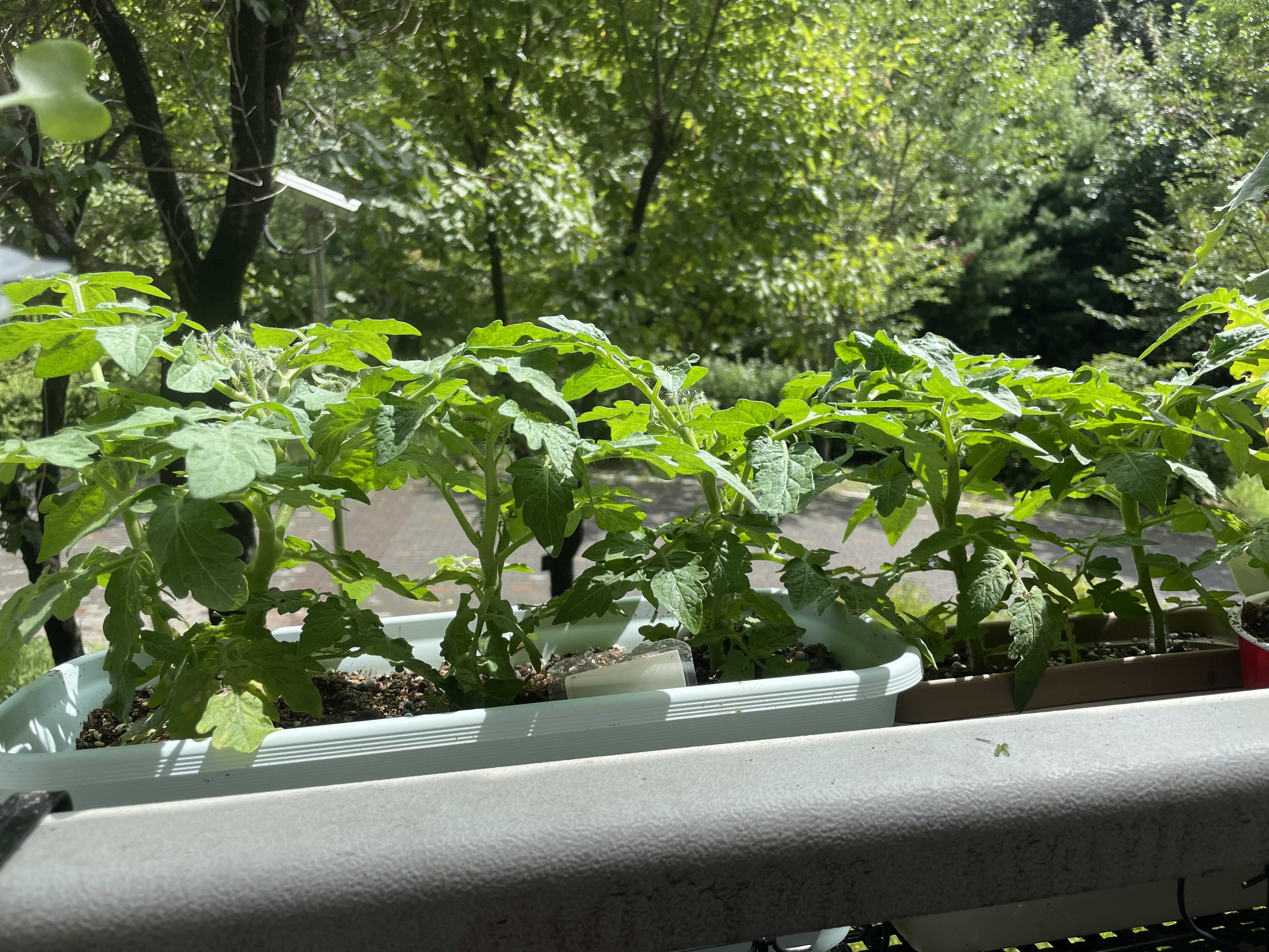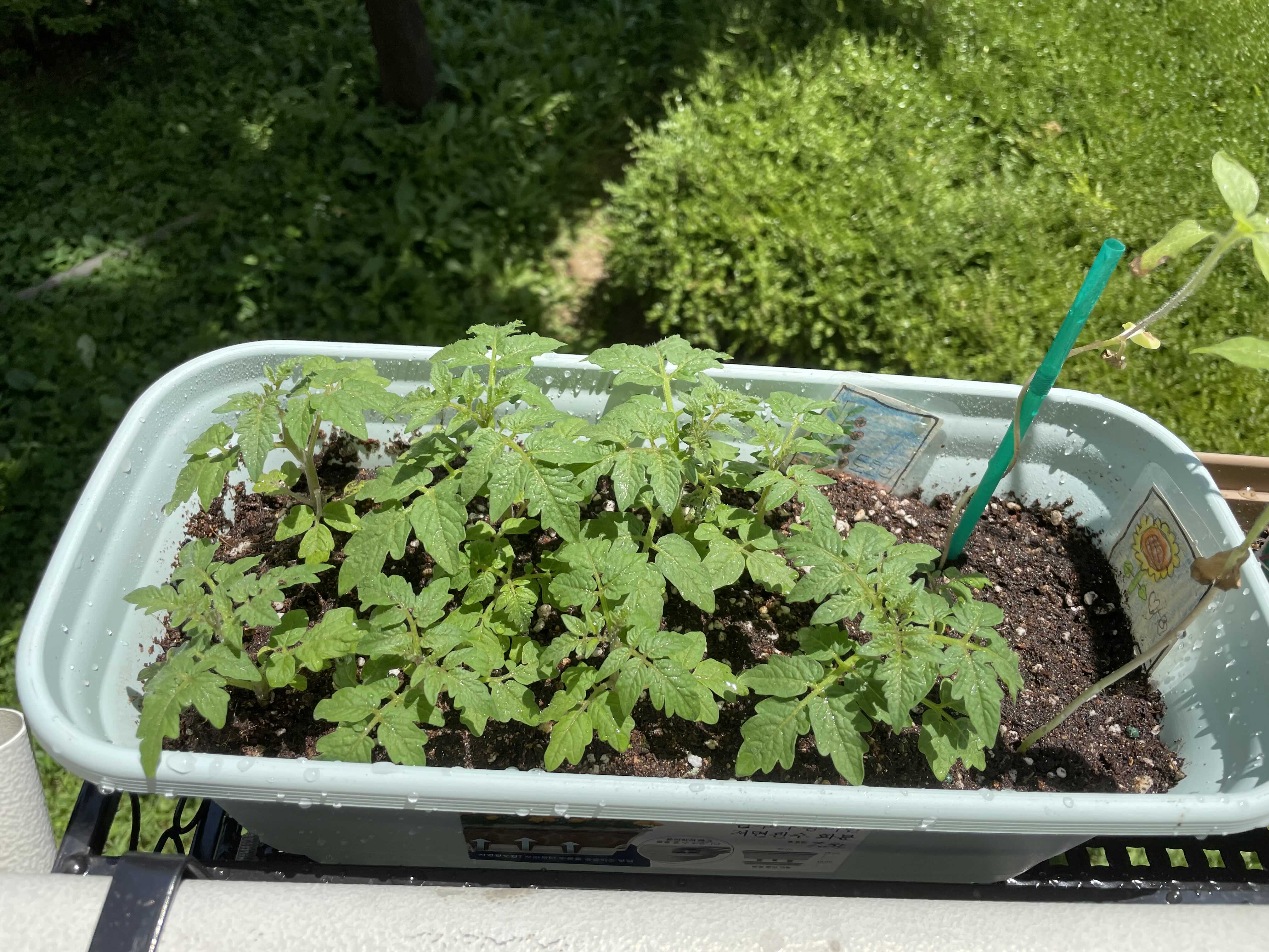 토마토 키가 꽤 컸고, 서로서로 사이에 공간이 너무 부족해 보이기 시작하네요.