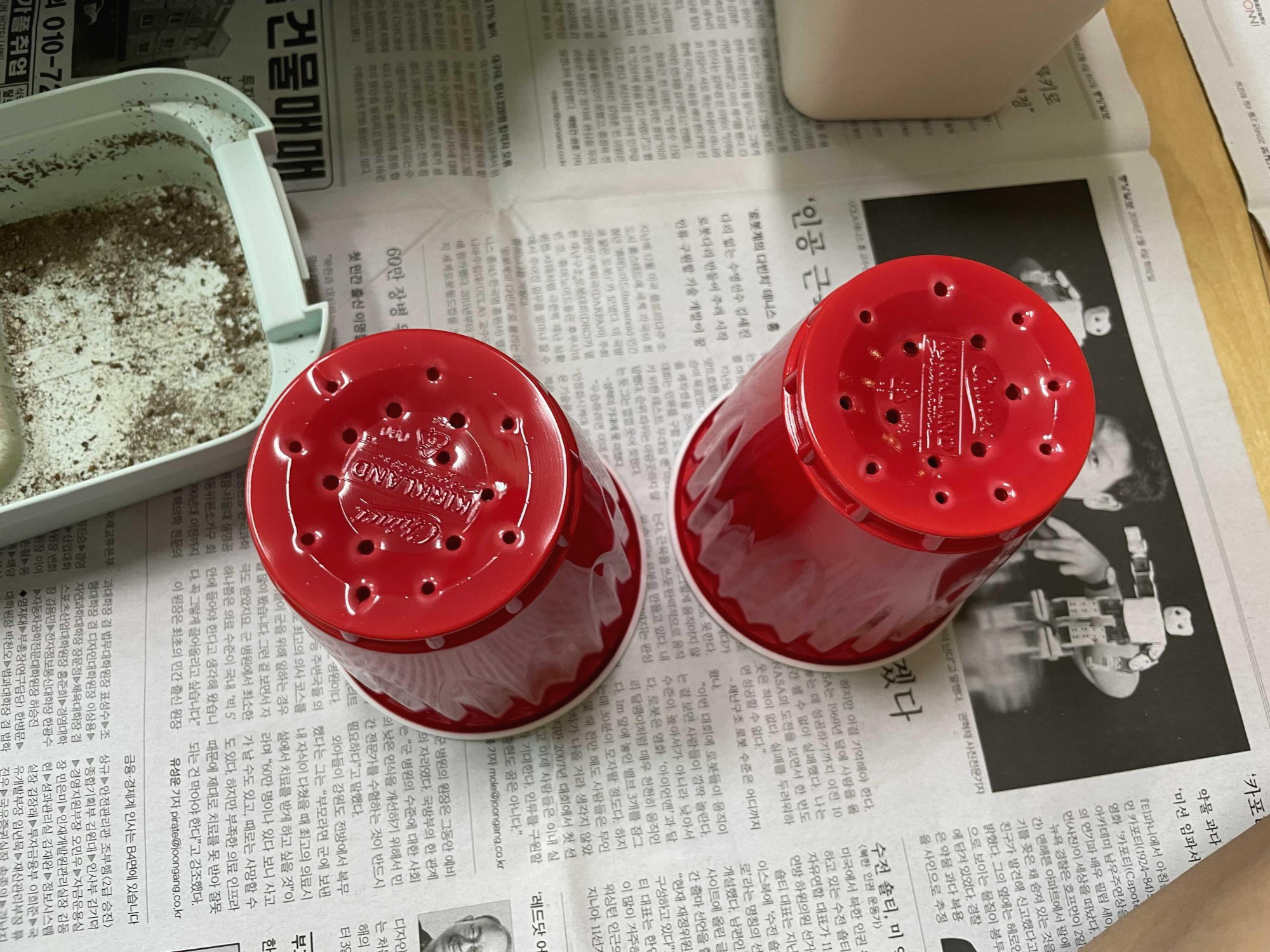 공간도 모자랄 듯 싶어 간이화분(?)도 ㅋㅋ 바닥에 송곳으로 구멍을 내여 준비했습니다.