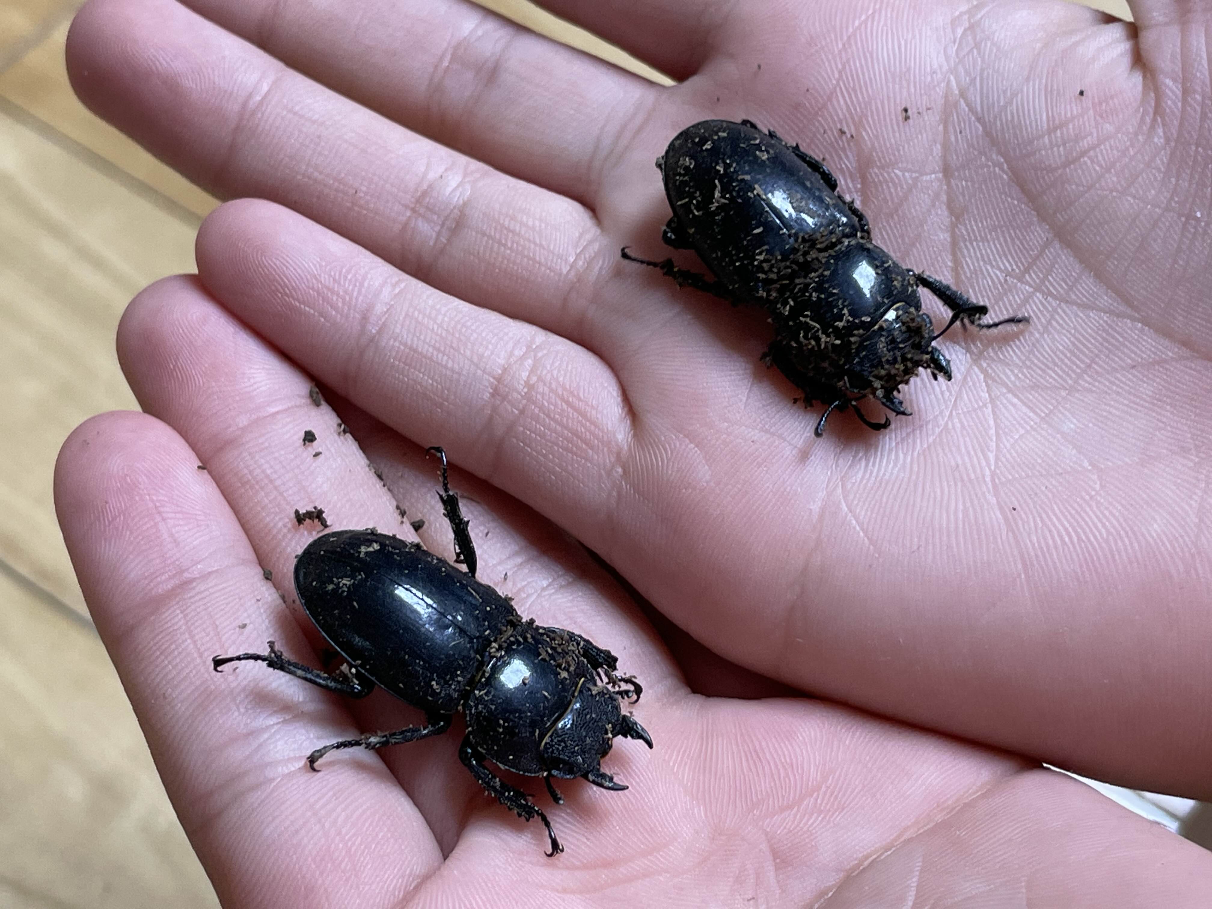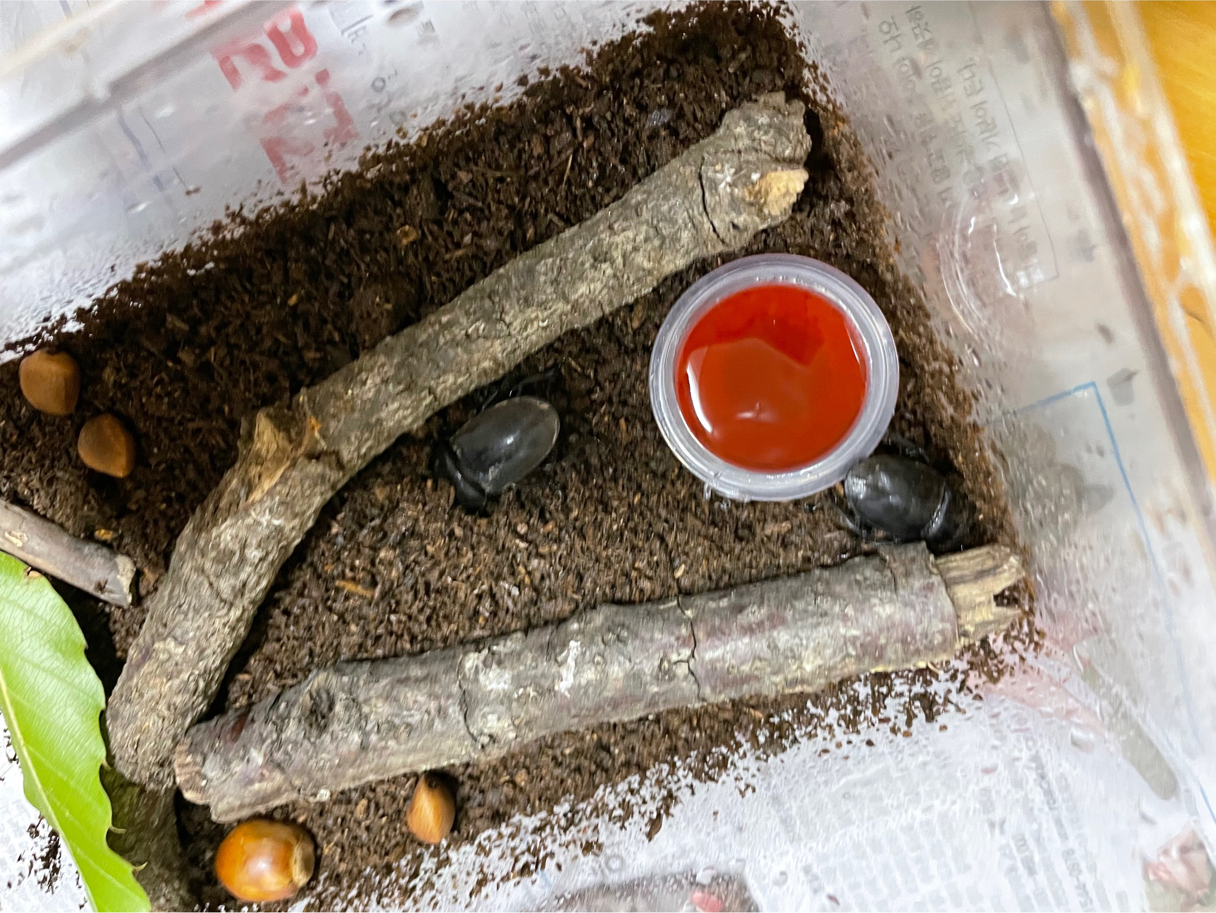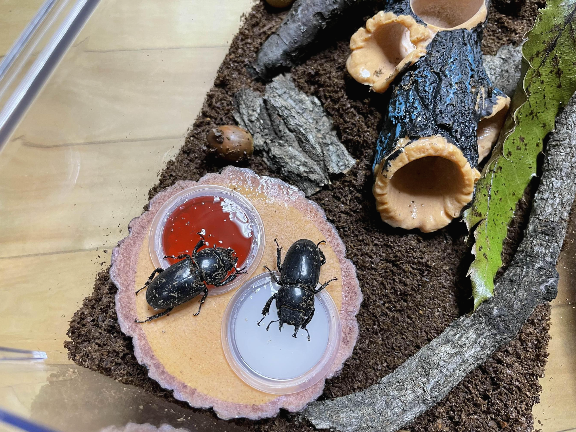 저희 사슴벌레 암컷 두마리와 (암컷으로 추정되는) 장수풍뎅이 애벌레는 너무너무 잘 살고 있어요.