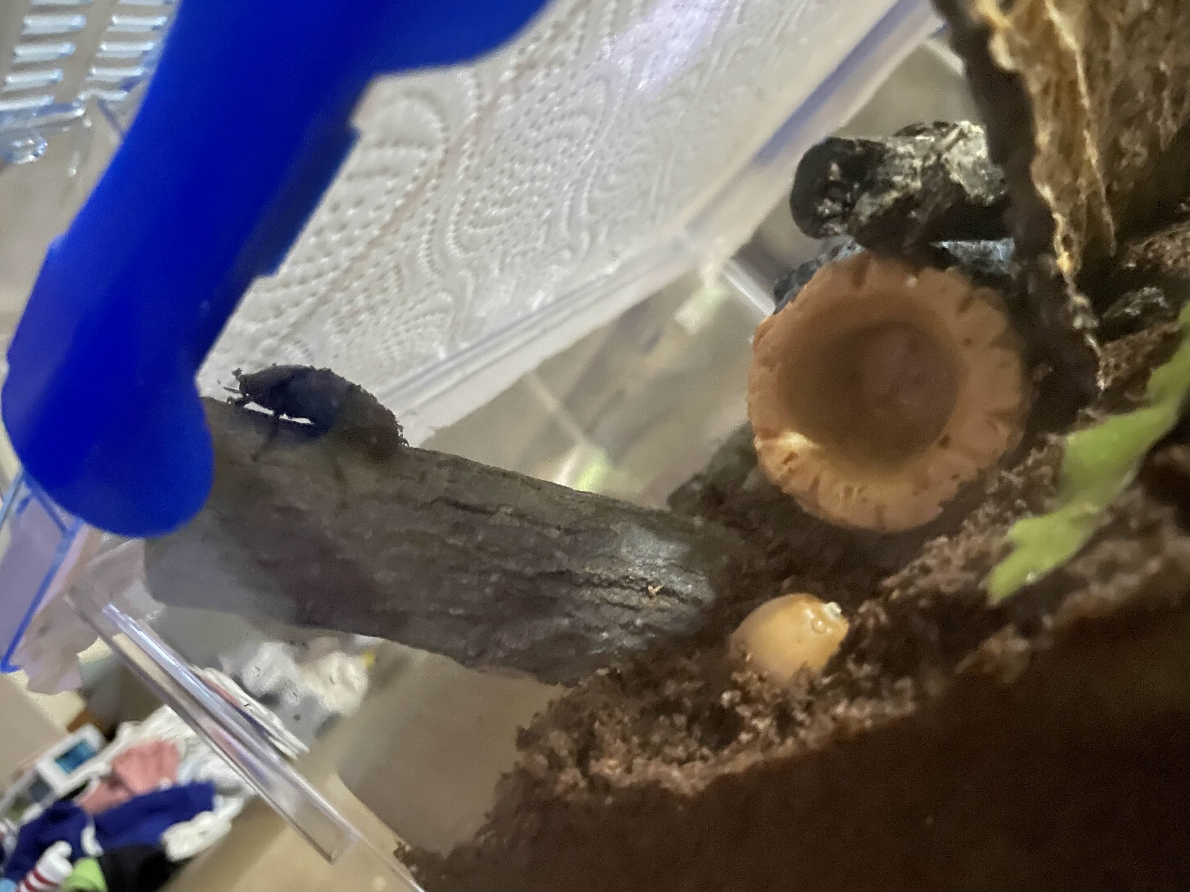 혹시나 하고 산란목을 넣고 사육장을 세팅해주었습니다.