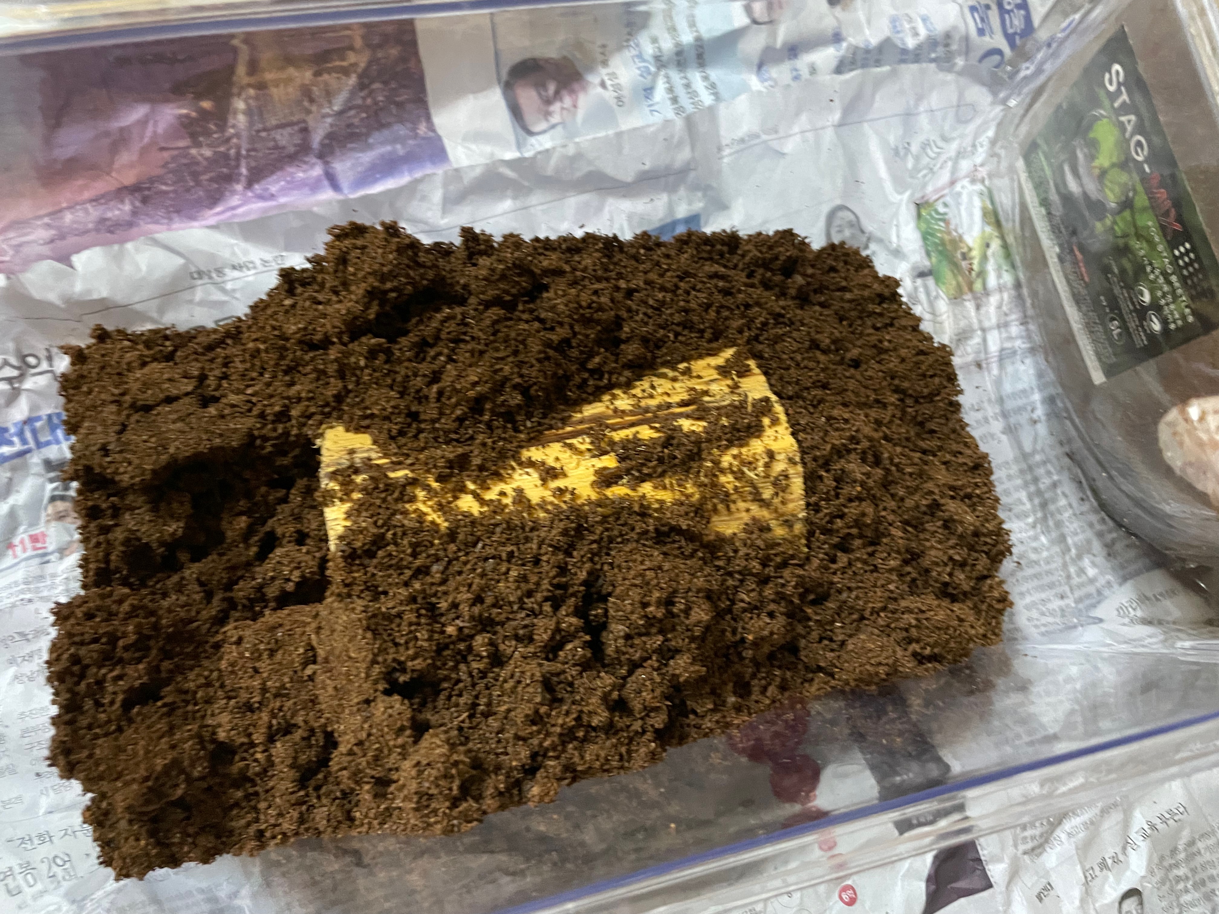 A. 수 많은 검색을 했지만.. 이미 사슴벌레 흙에 유충이 있는 경우도 있다. 그래서 냉동실에 꽤 오랜시간 넣었다가 사용해라, 라는 답변도 있었지만..그렇게까진 못하겠더라구요.